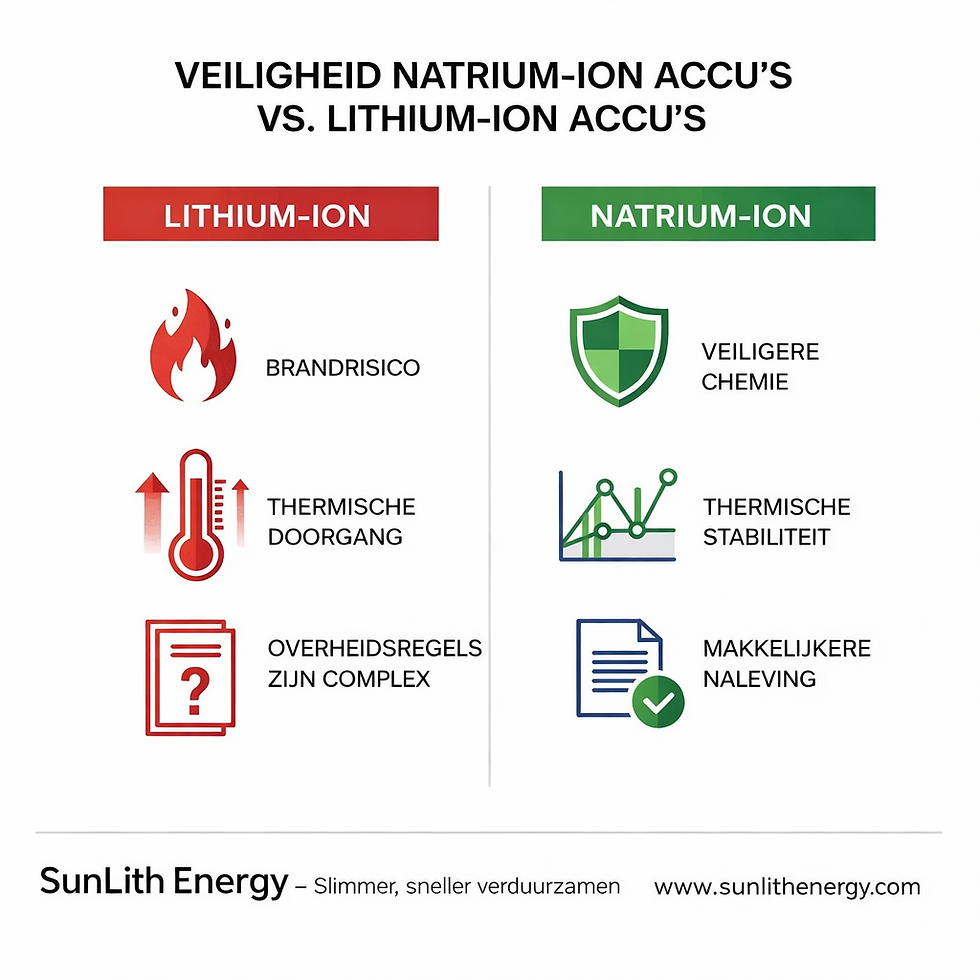 Daarbij onderscheiden natrium-ion batterijen zich als duurzaam, en milieuvriendelijk alternatief dankzij hun grondstofgebruik (gewoon zout), geen schadelijke en giftige bestanddelen en eenvoudige recycling.