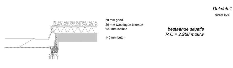 Met een Rc-waarde van 2,958 m²/Kw voldoet de dakbedekking aan de renovatie-eisen, maar het ligt wel onder de huidige nieuwbouweisen (6,3 m²/Kw).