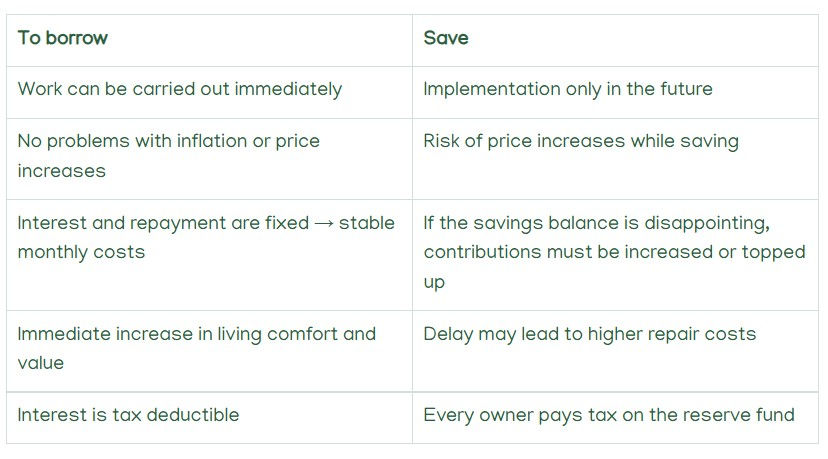 Borrowing, option 2: from the Future-proof maintenance fund for homeowners' associations